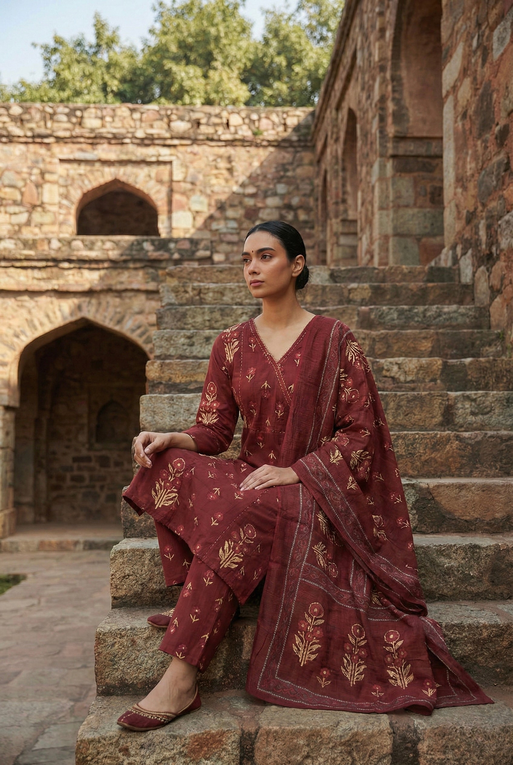Earthy Maroon Minimal Kurta/Co-ord Set | HER-527