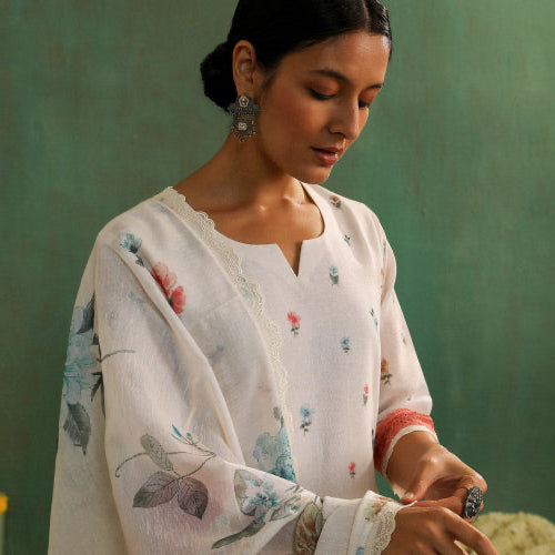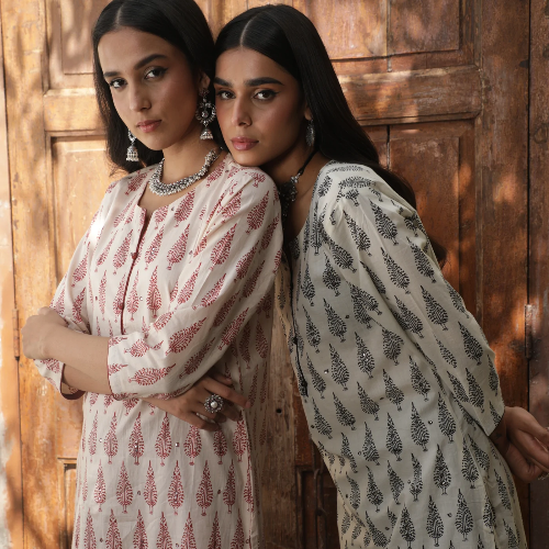 White Paisley Handblock Cotton Suit Set | HER-536