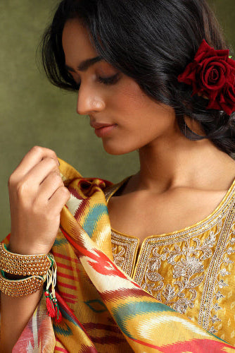 Mustard Straight Fit Chanderi Suit Set | HER-294