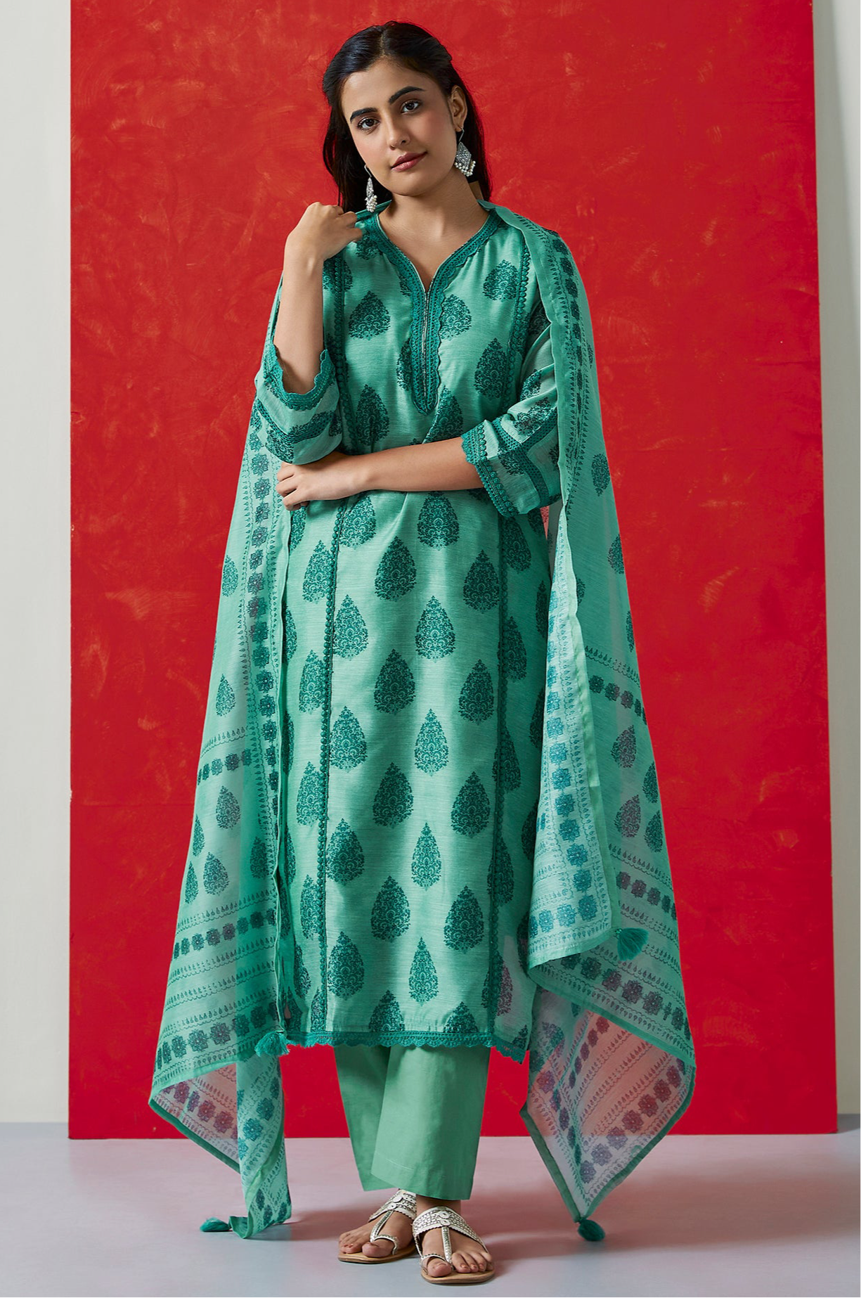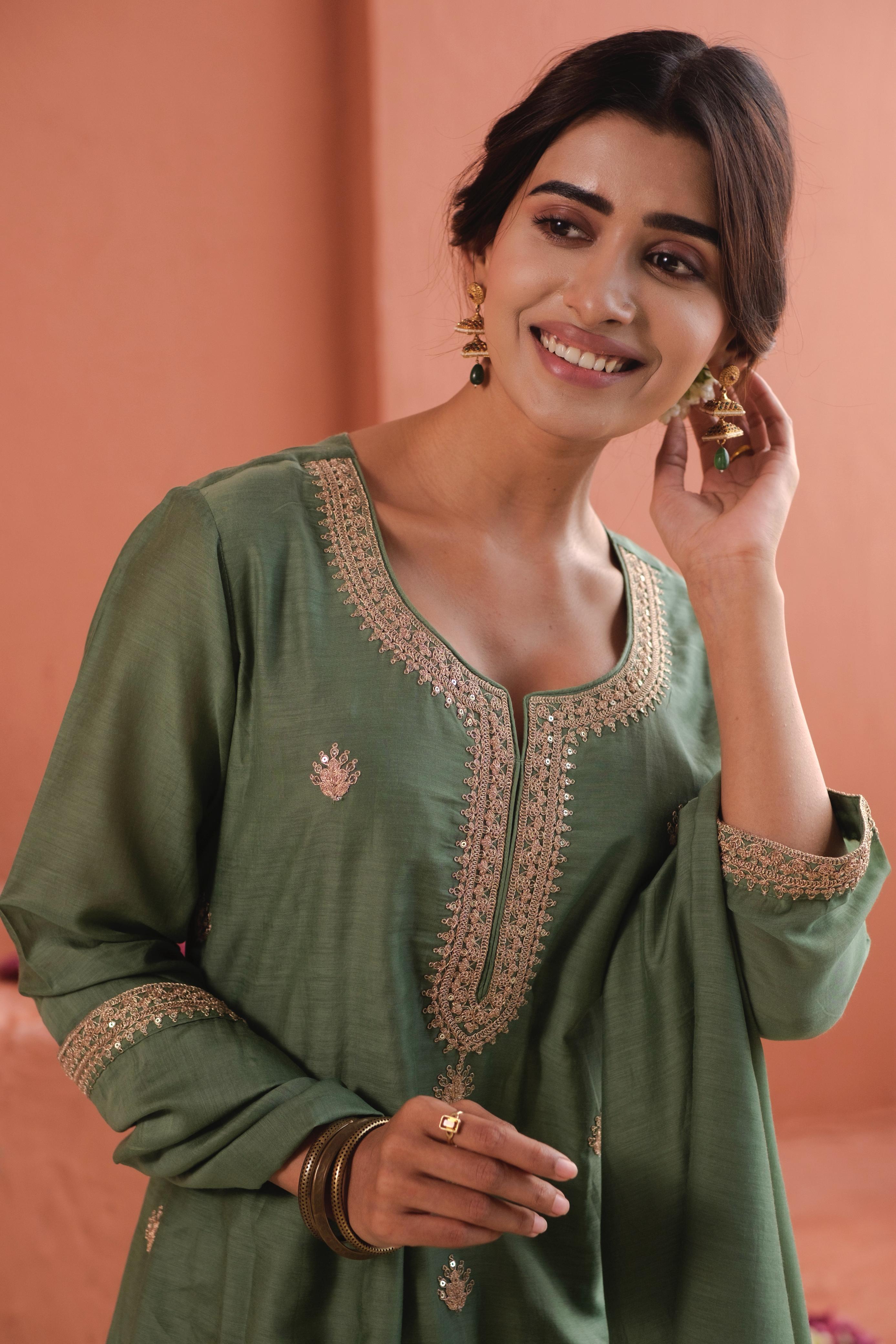 Green Chanderi Suit Set | DA-219
