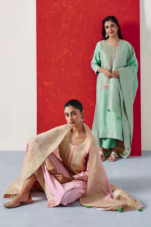 Pastel Pink Chanderi Suit Set | HER-252
