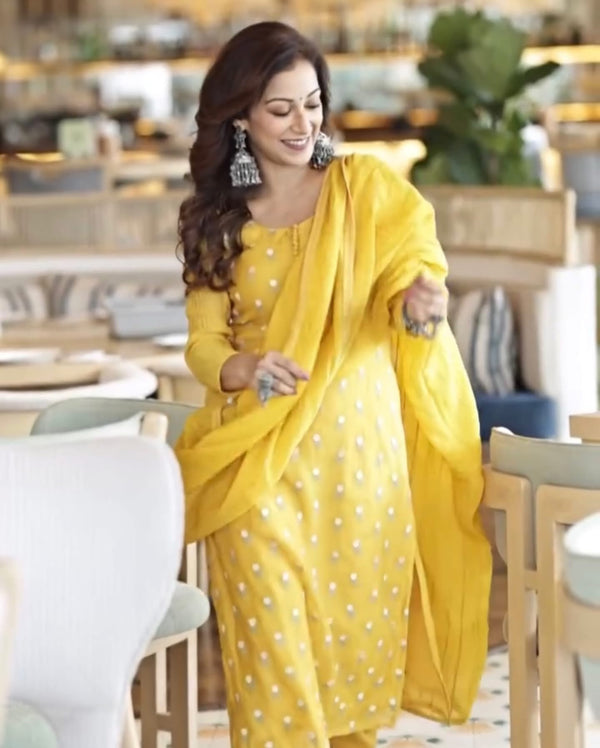 Aarvi Yellow Embroidered Suit Set | HER-559
