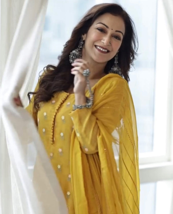 Zariyah Mustard Yellow Embroidered Suit Set | HER-588