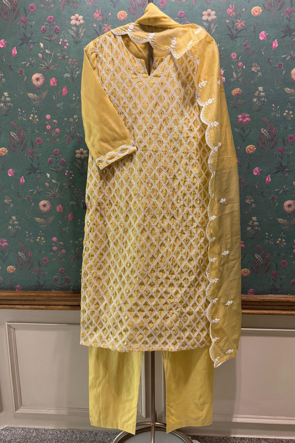 Save Rs. 2,897.50Radiant yellow Chanderi Suit Set with Lattice Embroidery | HER-392Radiant yellow Chanderi Suit Set with Lattice Embroidery | HER-392