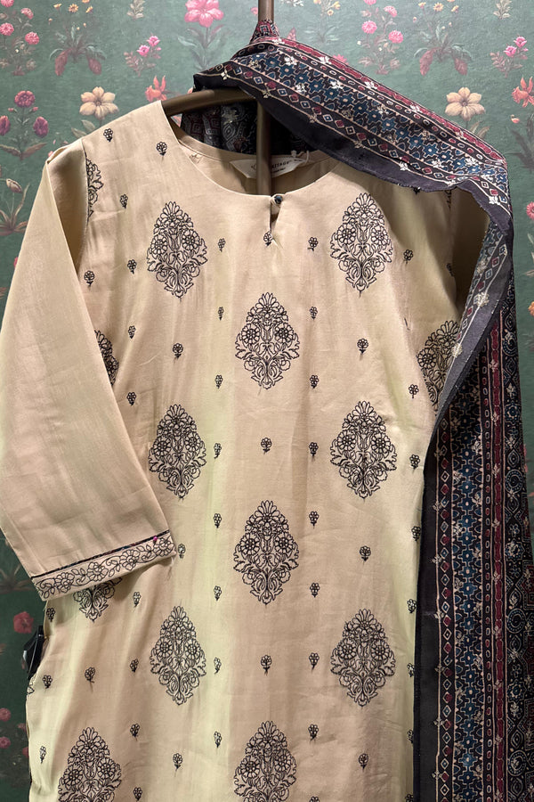 Beige Chanderi-Silk Suit Set,Ajrak Dupatta | HER-337 Sale priceRs. 5,666.50 INR Regular priceRs. 8,095.00 INR