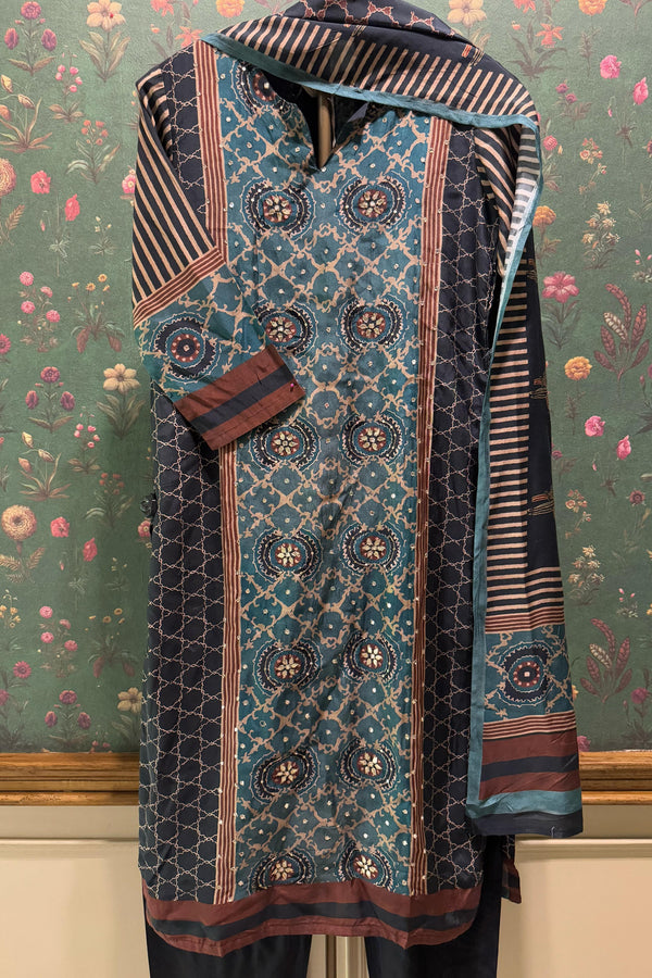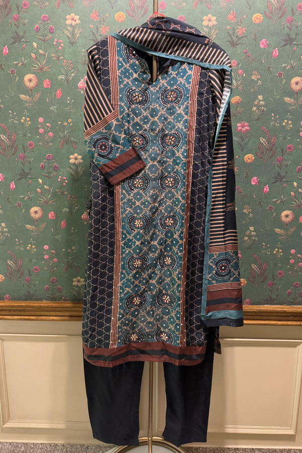 Gulshan Teal Mosaic Premium Suit Set | HER-572