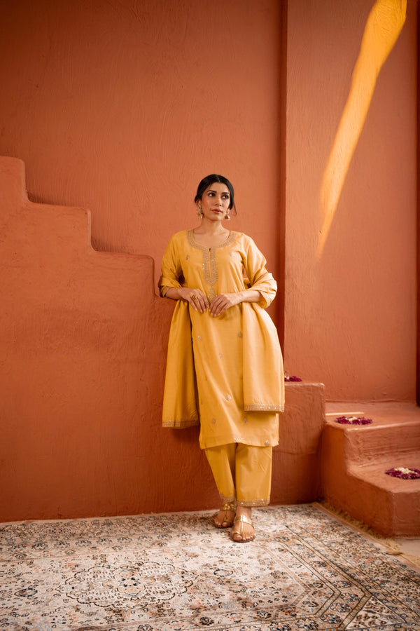 Zariyah Mustard Yellow Embroidered Suit Set | HER-588