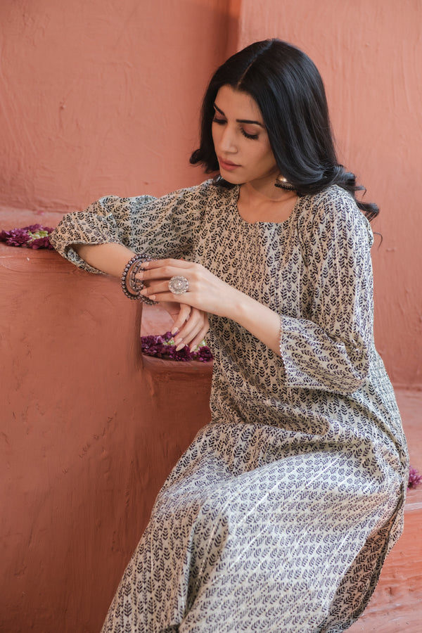 Saaz Lilac Printed Cotton Co-ord Set | HER-506