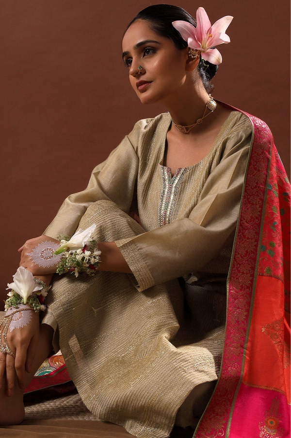 Aafreen Beige Mul Chanderi Embroidered Suit Set | HER-543