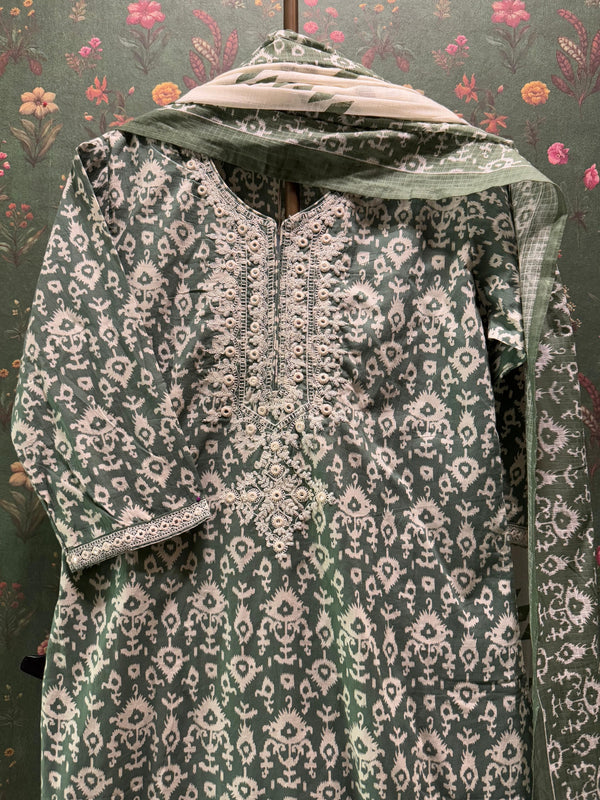 A suit set is a ready-to-wear traditional outfit for women, combining a kurta, matching bottoms, and a dupatta. It’s versatile, elegant, and suitable for everyday wear, office, festive occasions, or weddings—depending on the fabric, detailing, and silhouette!