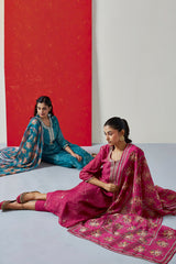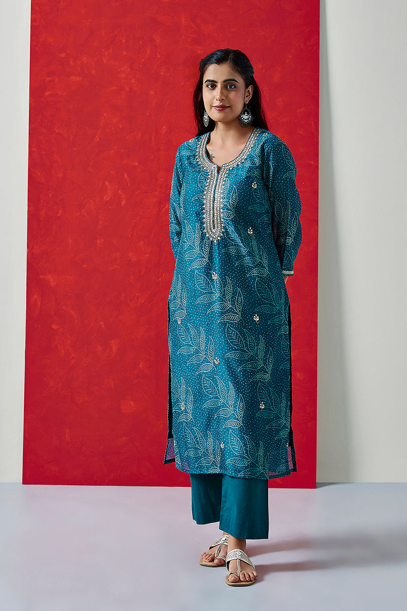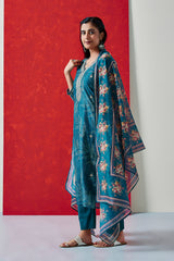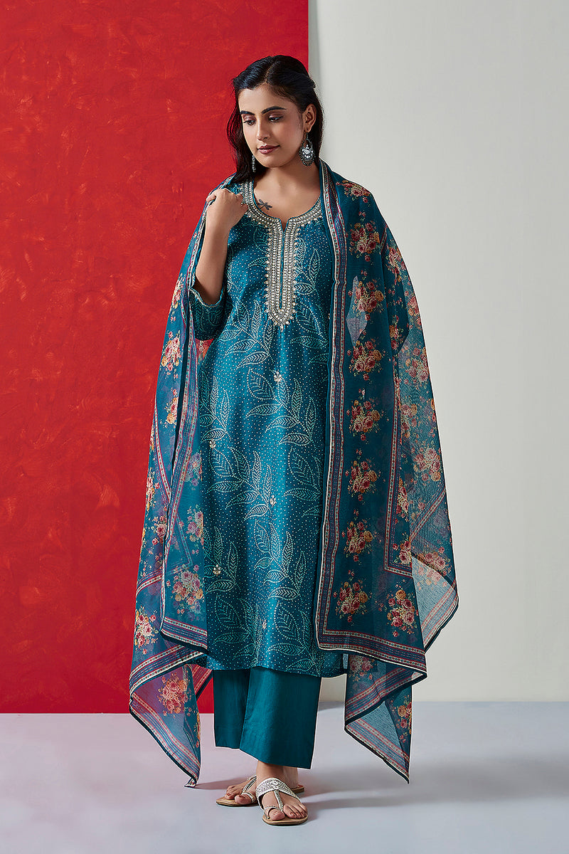 Blue Straight Fit Chanderi Suit Set | HER-412