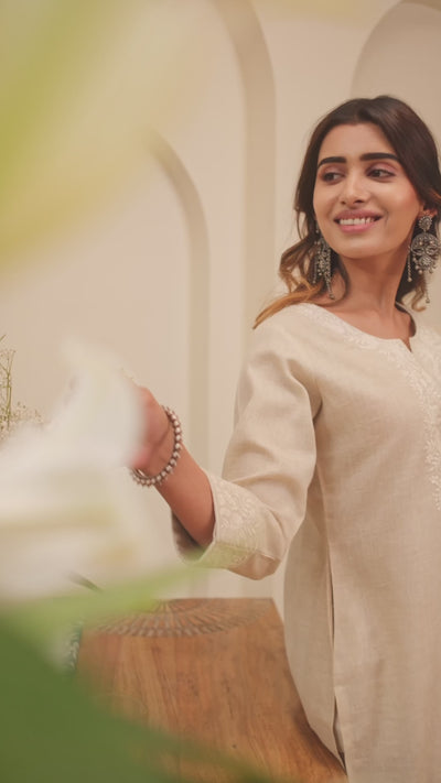Timeless grace, effortless charm — our Noor Linen Kurta Set in pure linen is a celebration of quiet luxury. Featuring delicate threadwork and a silhouette that breathes elegance, it’s perfect for slow mornings and meaningful moments.