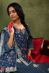 Step into timeless elegance with our Midnight Blue Handblock Printed Chanderi Suit Set, a beautiful blend of traditional craftsmanship and contemporary grace. This three-piece ensemble features: