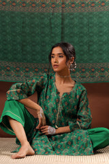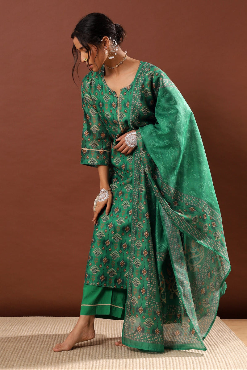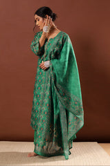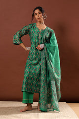 Emerald Green Chanderi Suit Set, with Pants and Dupatta