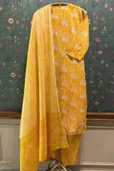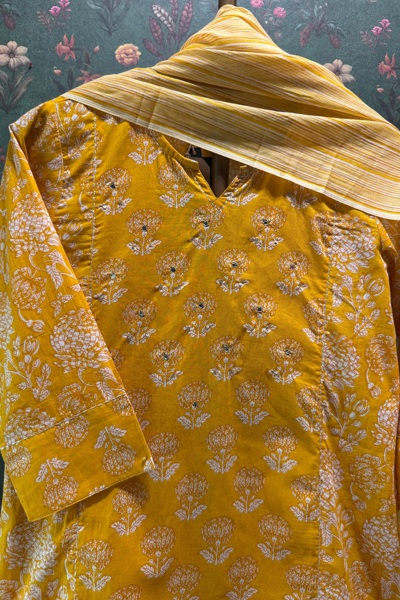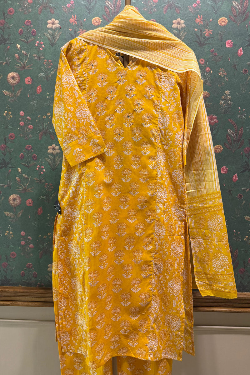Marigold Heritage Cotton Suit Set, with Pants and Dupatta