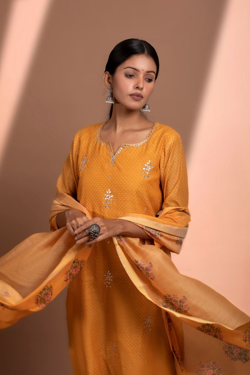 Mustard Straight Fit Chanderi Suit Set | HER-139