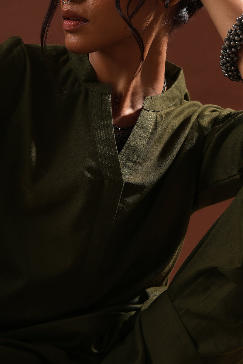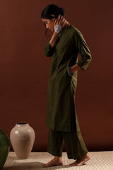 Olive Minimal Kurta/Co-ord Set | HER-527