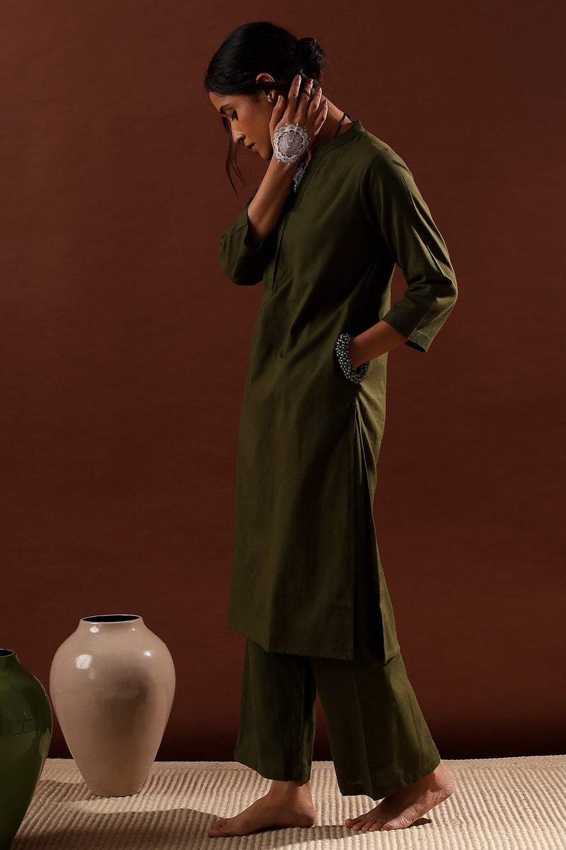 Olive Minimal Kurta/Co-ord Set, with Pants only