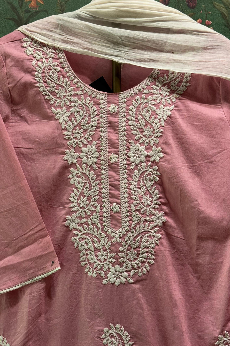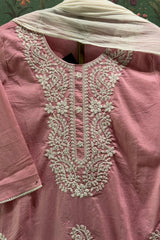 • Pink Chikankari Suit Set (With Pants & Dupatta)