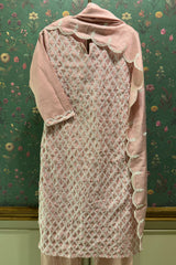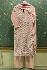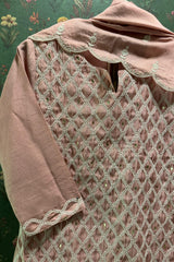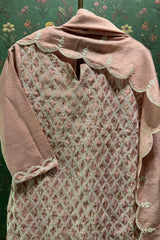 Millennial Pink Chanderi Suit Set with Lattice Embroidery | HER-392