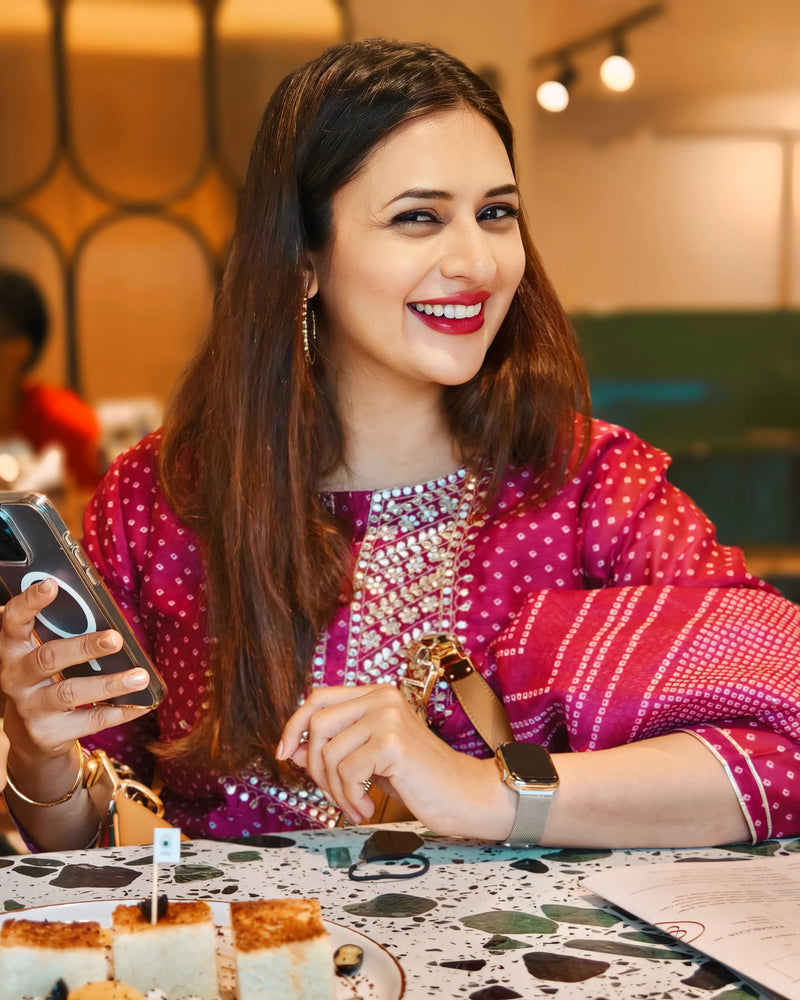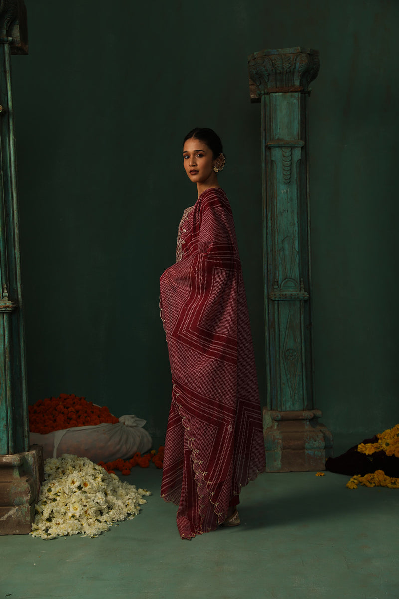 Wine Bandhani Chanderi Suit Set | HER-293