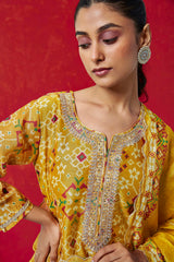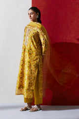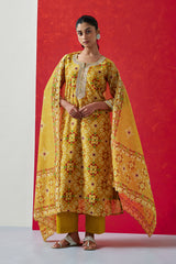 Yellow Chanderi Suit Set (with Pants and Dupatta)