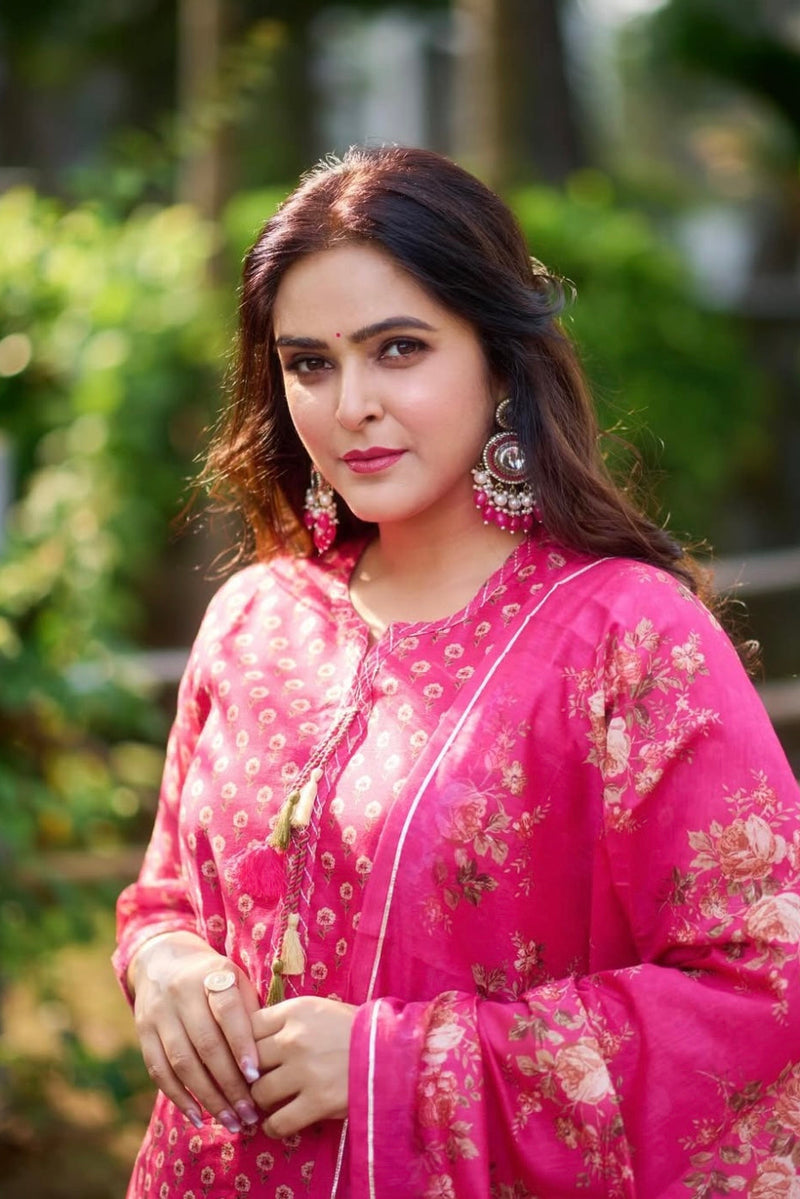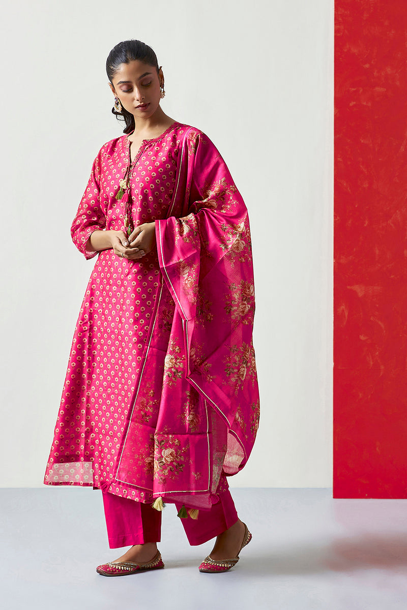 Dark Pink Chanderi suit set
