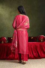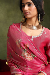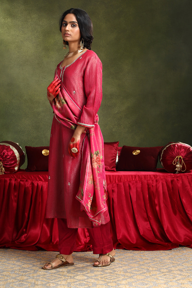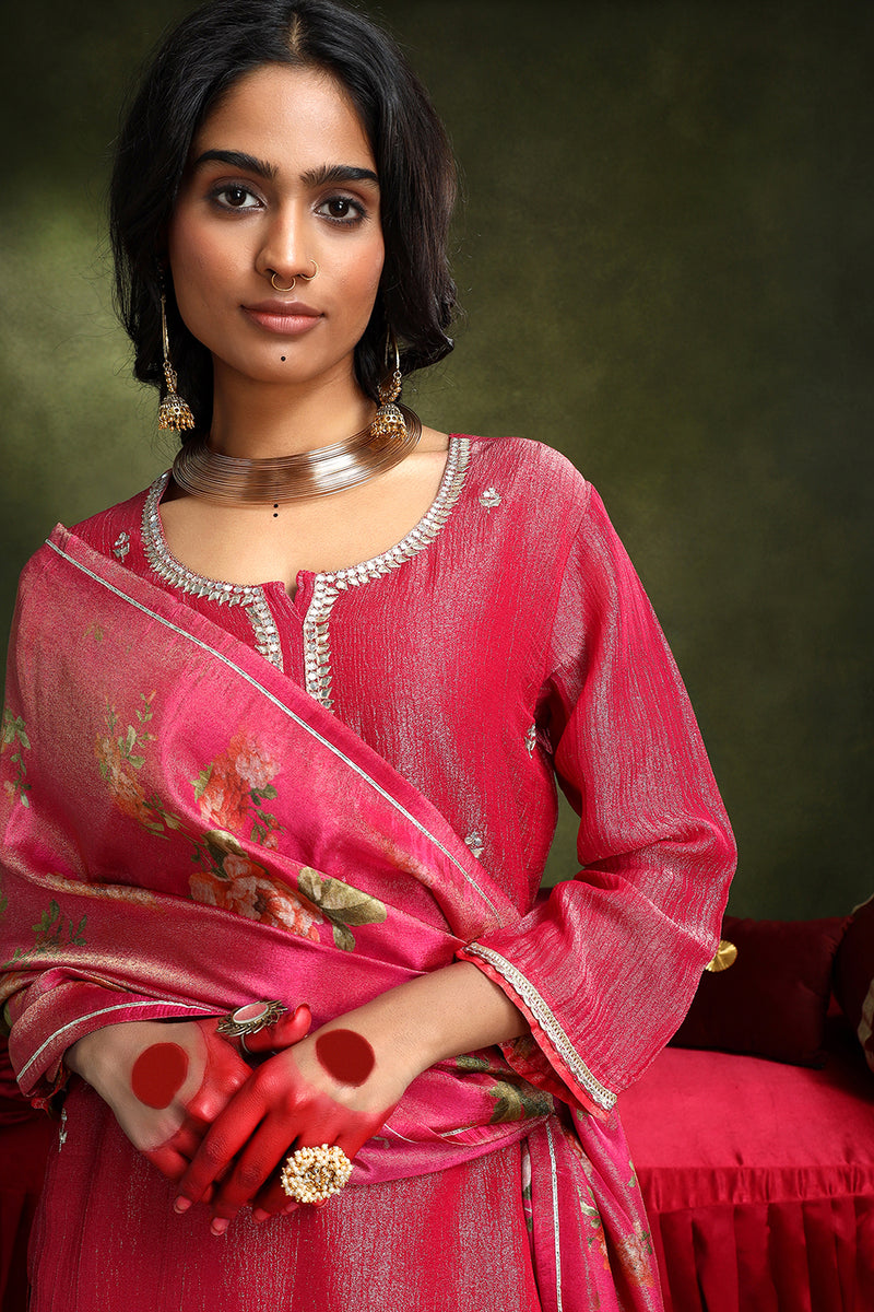 • Blush Pink Pure Crushed Tissue Straight Fit Suit Set, with Pants And Dupatta