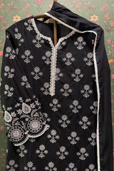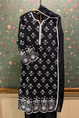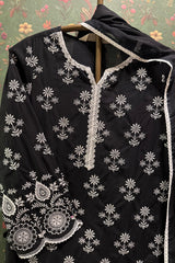 Noir Black Cotton Suit Set, with Pants and Dupatta