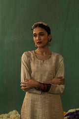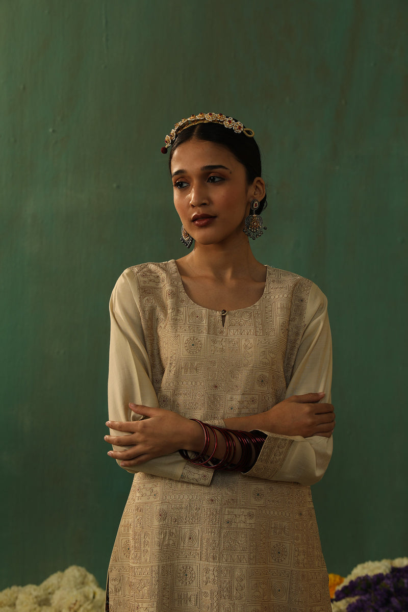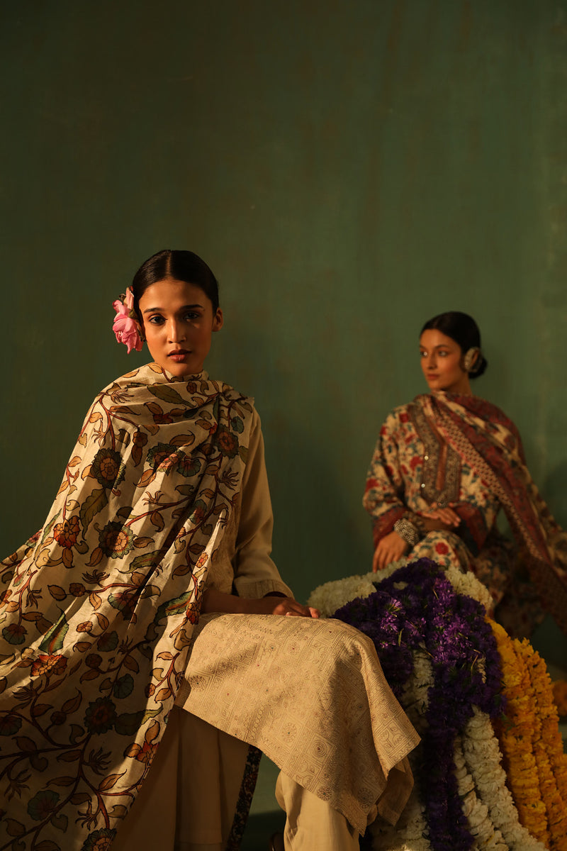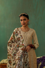Beige Chanderi Suit Set with Kalamkari Dupatta | HER-335