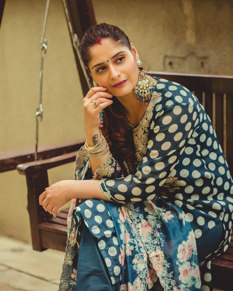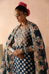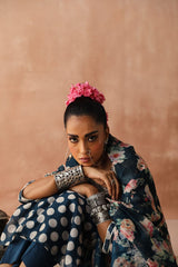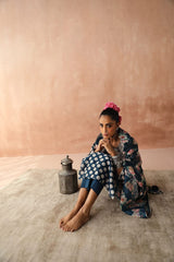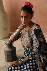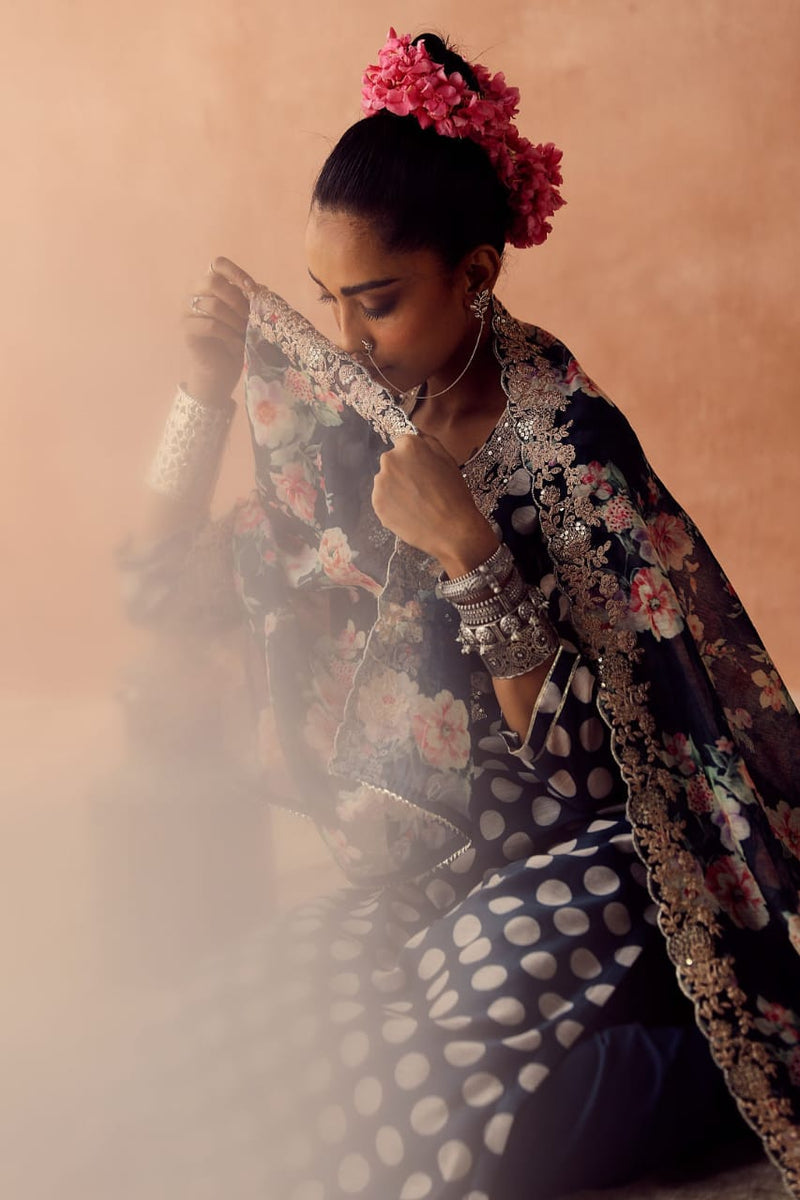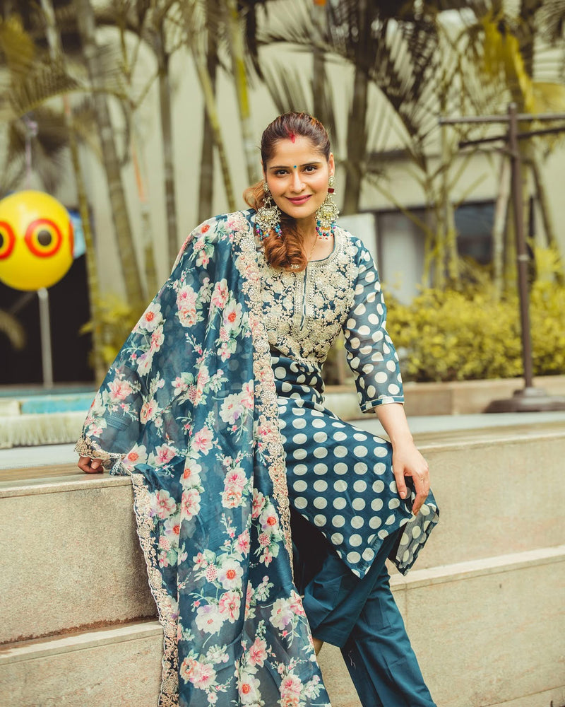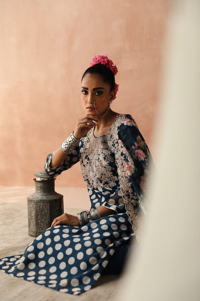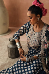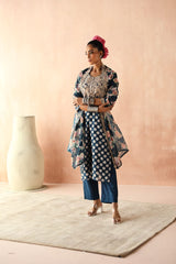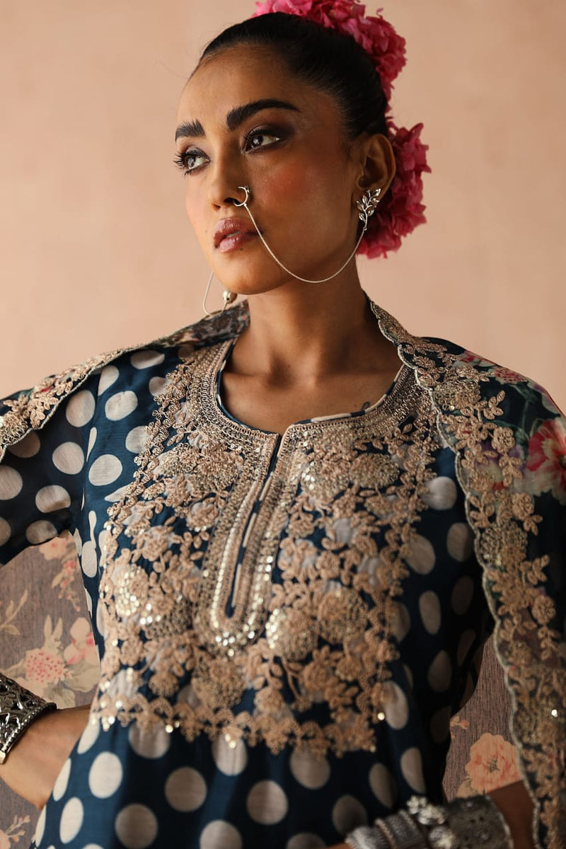 Big Polka Dot Blue Straight fit Chanderi Kurta set
