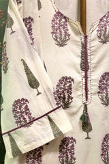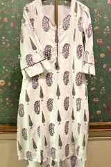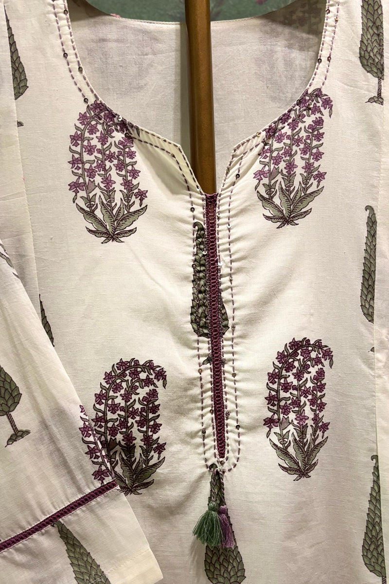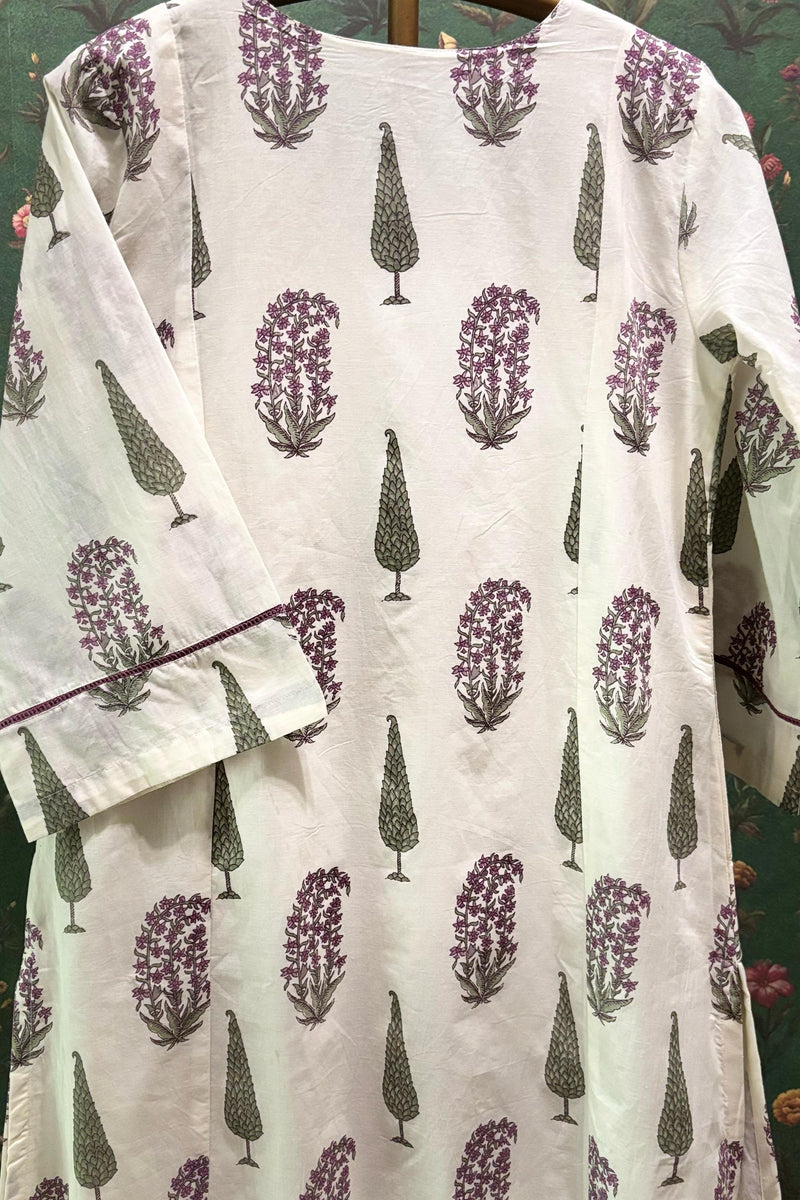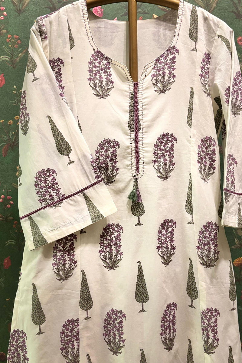 Paisley Hand-block Cotton Kurta Set, Off-White & Lilac Straight Fit Cotton Kurta/Co-ord Set, with Pants only