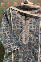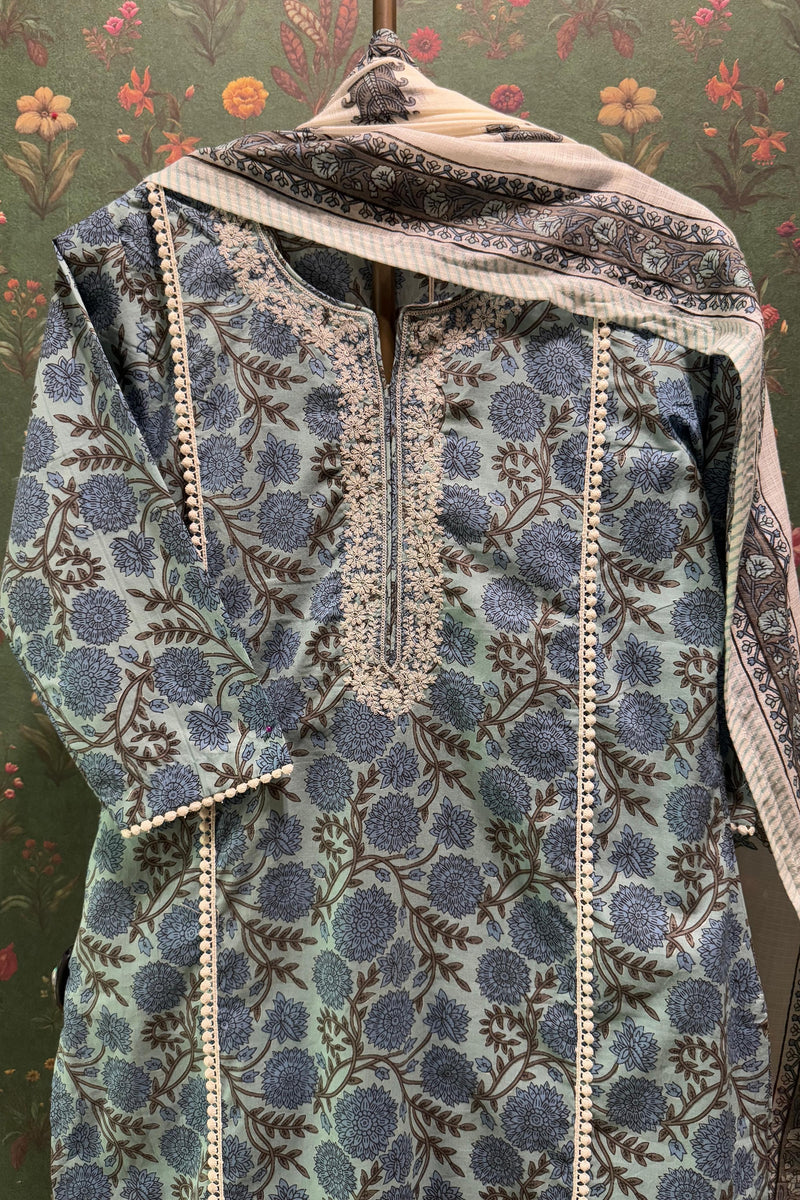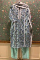 Sky Blue Floral Suit Set with Kota Doria Dupatta
