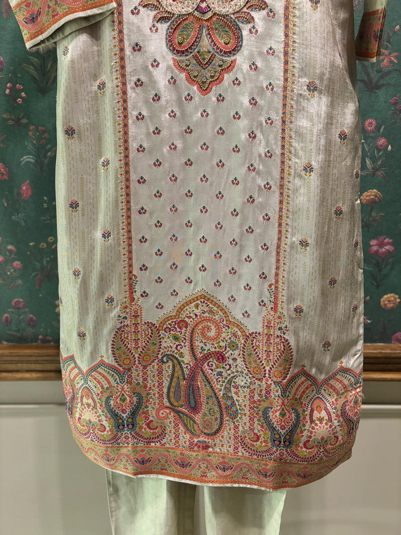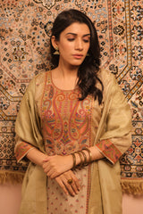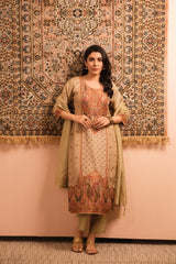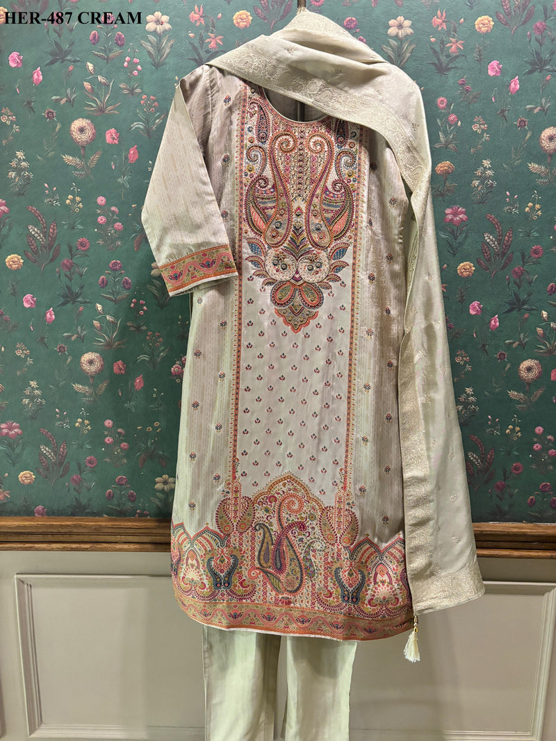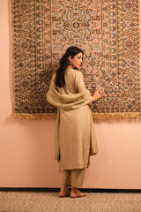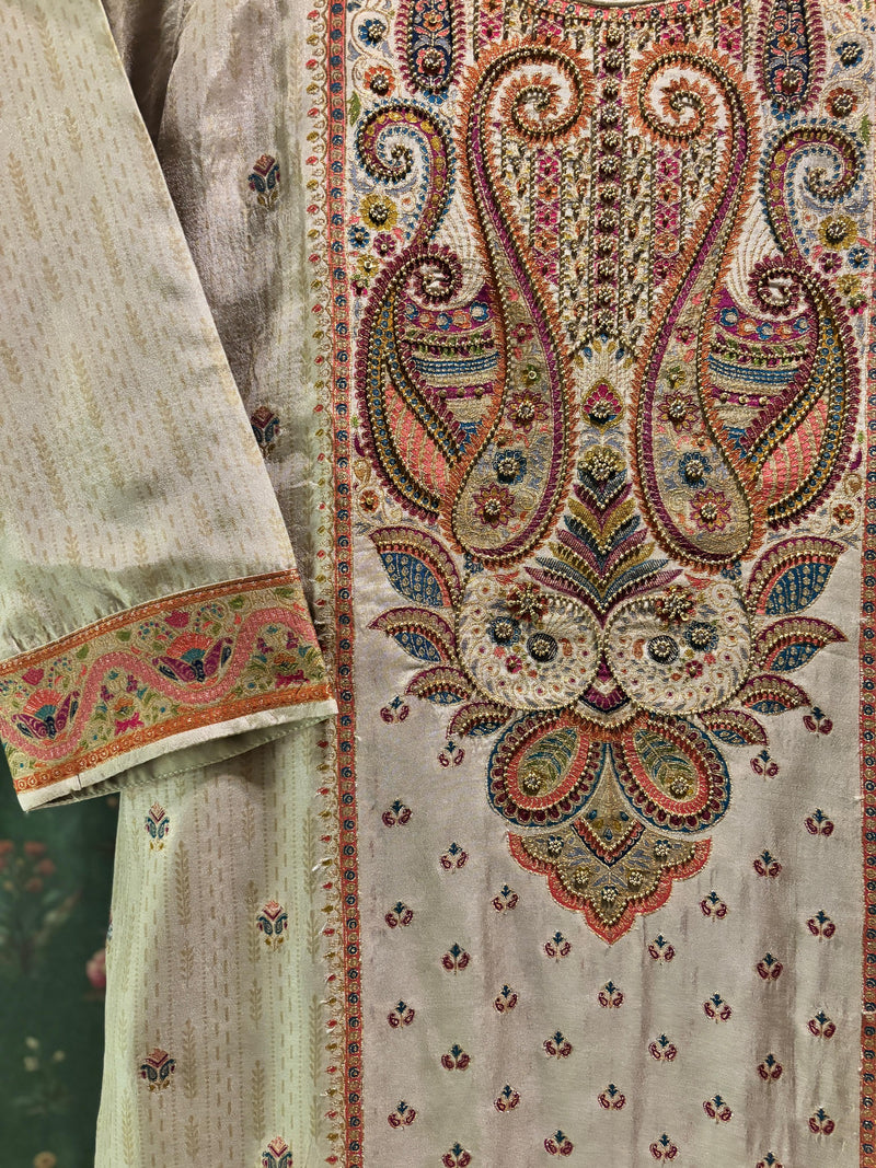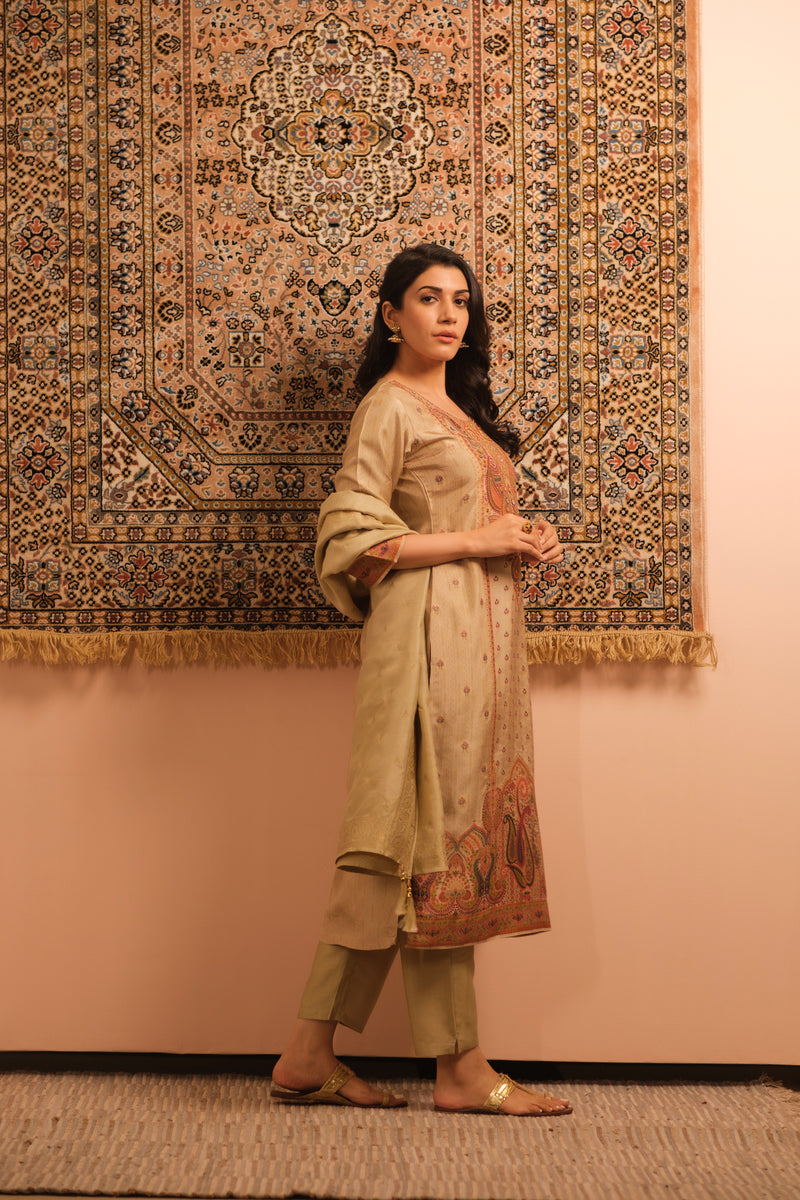 Meher Warm Beige Dola Jacquard Suit Set | HER-487