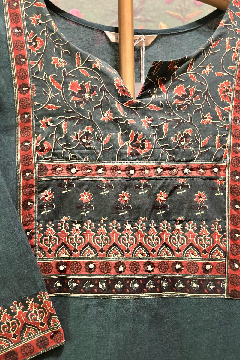 Green Straight Fit Cotton Kurta Set | HER-492