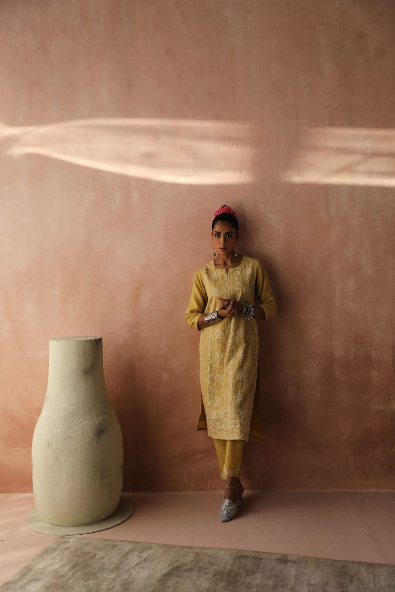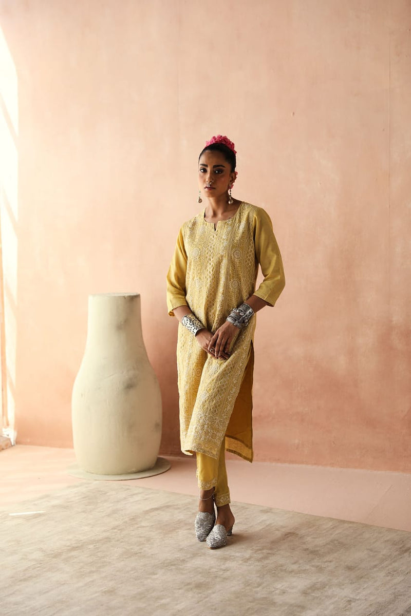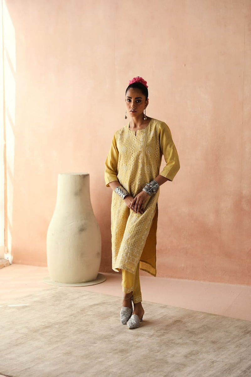 Yellow Chikankari Kurta/Co-ord Set, with Pants only