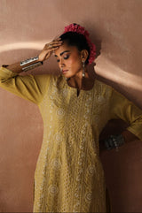 Yellow Chikankari Kurta/Co-ord Set | HER-258